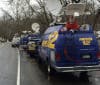 Media trucks from Connecticut and New York are on the scene in this normally quiet neighborhood. Media is not being allowed to enter the side of the road where the house is located. The home, located across a river, is right at the entrance to Mountain Laurel Road at the corner of Brookside Drive.