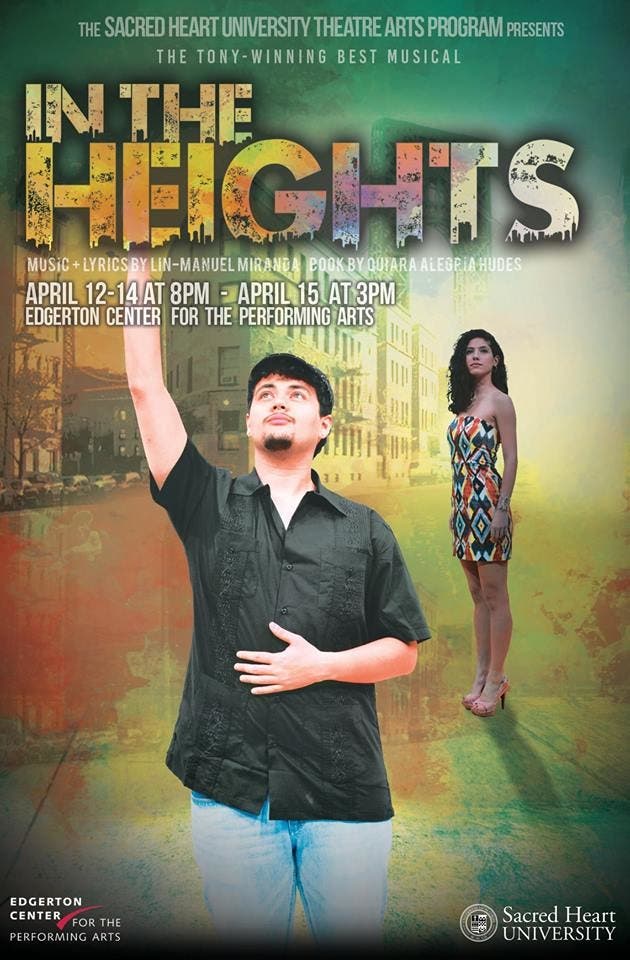 Fairfield, CT - The Sacred Heart University Theatre Arts Program is presenting their splashy spring musical this weekend. I got to attend the exciting opening night of the SHU TAP’s production of Lin Manuel Miranda’s first musical entitled ‘In the Heights.’ Mr. Miranda (you may have heard of his little musical entitled ‘Hamilton’) wrote the earliest draft of this high-energy show in 1999 and it played at Wesleyan University’s student theater company’s second stage in 2000. Quiara Alegria Hudes wrote the current book in 2004. The development of ‘In the Heights’ was supported by the Eugene O’Neill Theater Center in CT during a residency at the Music Theater Conference of 2005 and went on to Broadway with Lin Manuel in the role of Usnavi and Christopher Jackson (George Washington in ‘Hamilton’) as Benny. The show earned 13 Tony nominations and won four, including Best Musical.