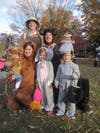Bill and Erin, parents of two sets of twins, all dressed up as African safari animals. They were joined by their South African au paire, Sarah Goodman, who came attired as their safari tour guide.