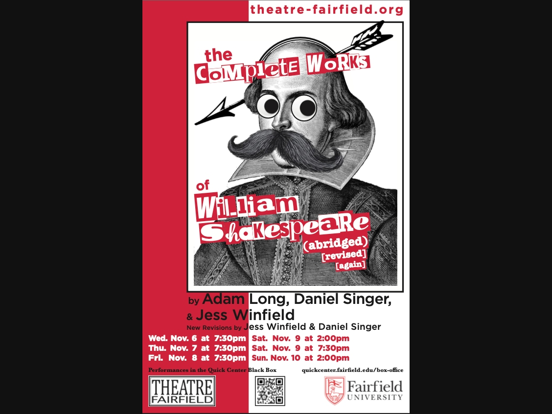Our first show is The Complete Works of William Shakespeare (abridged) [revised] [again] by Adam Long, Daniel Singer, Jess Winfield, new revisions by Daniel Singer and Jess Winfield.