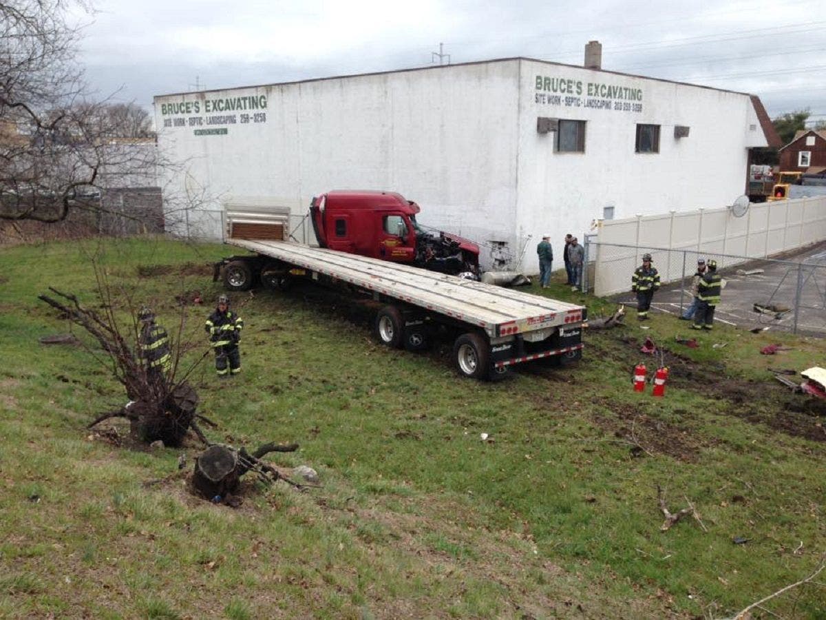 Tractor-Trailer Goes Down Embankment Off I-95 In Fairfield