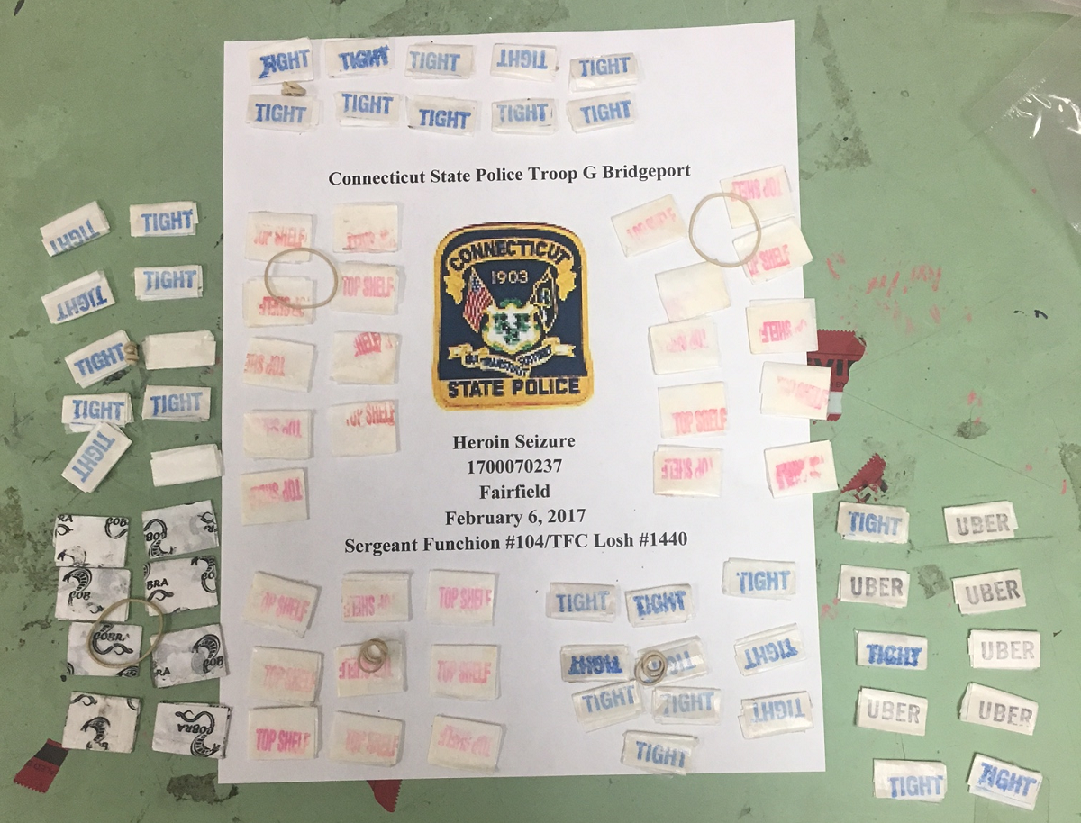 FAIRFIELD, CT — A traffic stop led to the seizure of more than 80 bags of heroin and the arrest of two Maine residents on Route 15 in Fairfield, according to Connecticut State Police.