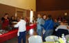 Saturday, a Dr. John Lawson Benefit Pasta Dinner and Auction was held at the , attracting a crowd of over 450. Three seatings, 4:00, 5:30 and 7:00 p.m., were needed to accommodate everyone. It also took many pans of ziti and sausage and rolls and salad and trays and trays of dessert to feed them all, as well as a band of volunteer servers. Throughout the dinners, the band Bookends entertained, also having donated time.