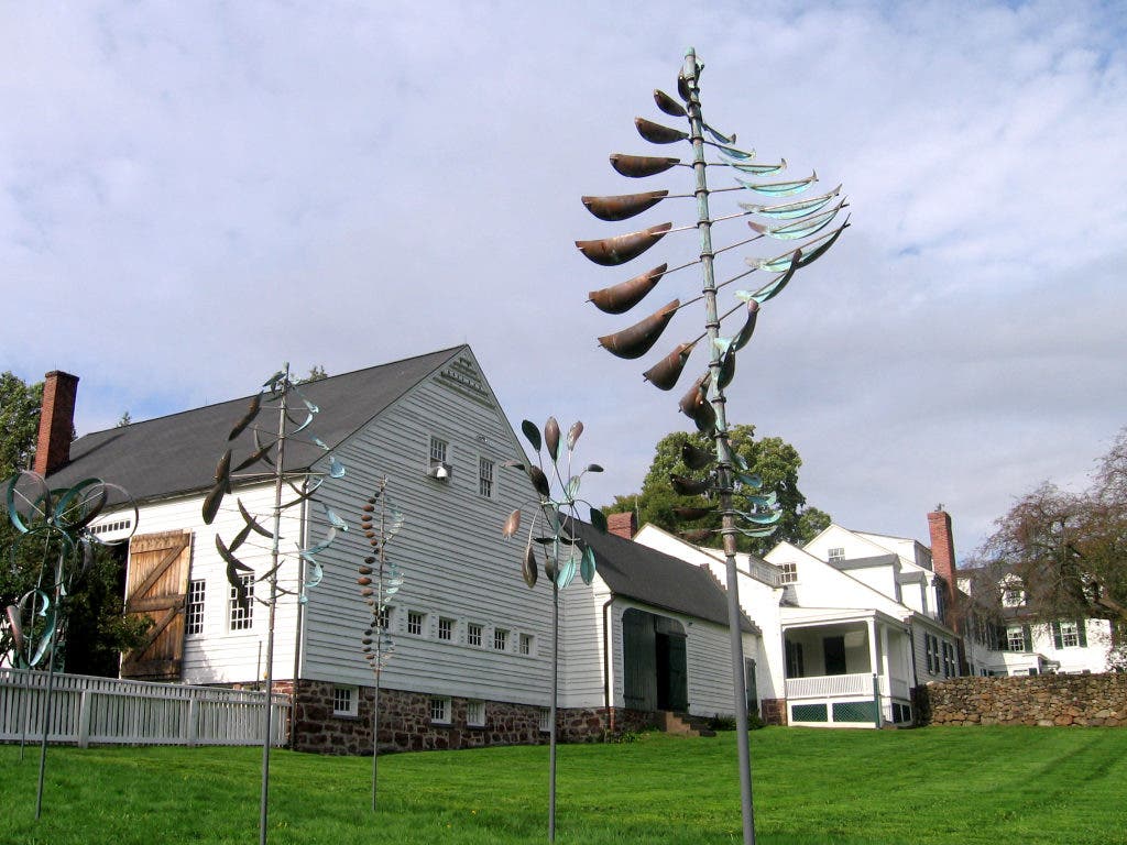 Hill-Stead’s rolling estate provides an ideal backdrop for these peaceful, undulating works, which interact with even the slightest breeze. The sculptures, ranging in height from 5 to 28 feet, are handmade of copper and stainless steel, and can be arranged individually or in groups.