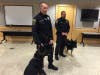 Submitted photo: Officer Mortensen and K-9 Ryker (front) stand next to Officer Joe Capodiferro and K-9 Drak during Drak’s retirement story.