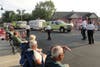 The procession started on South Main Street, led by Tunxis Hose, and made its way over the bridge. The line of marching bands, firefighters, and fire trucks made its way to the Fireman's Carnival grounds to the sound of jubilant music. Some firefighters from Farmington and East Farms Fire Departments were called away for emergencies just before the parade began.