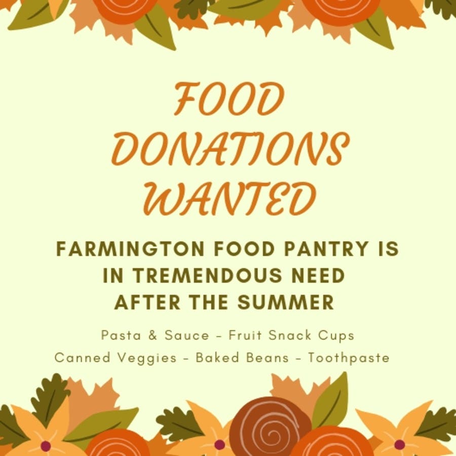 Despite the generosity of residents of Unionville and Farmington, most food pantries are often depleted after the summer months when vacations take donors out of town and schools, scouts, civic groups aren’t as active. Without the support of many individuals, businesses, churches in the community, the all-volunteer pantry staff would be unable to meet the monthly food supply needs of the households currently qualified to the use the pantry.