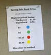 Over 30,000 books are donated every year. Palmer has handled every one, coming in one day a week, year round. First she checks to make sure the book is in acceptable condition- no mold, no missing pages. Then the library staff checks to see if the book should be added to the collection. If the book is going into the sale, she assigns it a price, based on Bookfinder listings she checks with her husband David Palmer; selects an appropriate category, and places it on the appropriate metal shelf in the storage room.