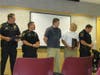 Lt. Colin Ryan and Officer Kory Vincent were recognized for their work arresting two men who were in the midst of robbing a store at the mall using a knife. Ryan and Vincent chased the two suspects on foot into another store and were able to take them from the store without anyone getting hurt, said Police Chief Paul Melanson, who was presenting the awards.