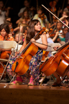 Dr. Shinichi Suzuki developed a Suzuki Playdown Concert. The mission of this concert is the inspiration for nurturing young children to express themselves through music. The Union School Playdown begins with the most advanced player or players, when they are finished performing they stay on stage when the next level of performers join them. Then students from every level and instruments are added and the concert continues until the beginning students come up to perform. This year 145 string students played the signature “Twinkle” Variations and Theme. It is a delight for the audience to hear the different pieces that the string students have mastered and to hear the tone increase as more students come onto the stage. The most amazing part of the Playdown concert is that Suzuki students from all over the world have this shared experience.