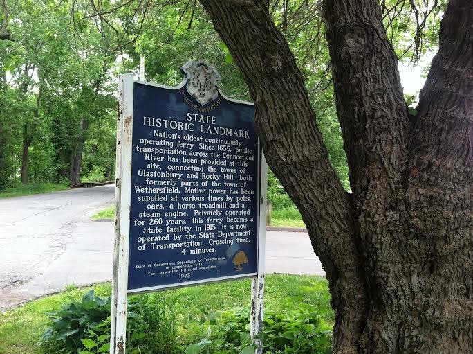 The nation's oldest continuously operating ferry service crosses the Connecticut River between Rocky Hill and Glastonbury. The ferry dates back to 1655. The ferry operates on a tug-and-tow system with a small tugboat - the Cumberland - pulling a barge - the Hollister III.