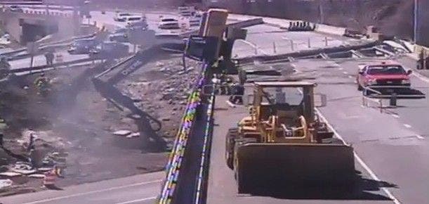 The scene unfolded at approximately 12:45 p.m. at the Route 2 westbound Governor Street overpass, where construction was taking place, state police said. When troopers arrived, a John Deere excavator was found on its side with the boom leaning over the overpass, state police said.