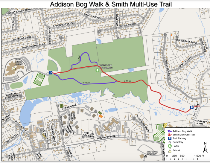 Click here to view the Addison Bog and Woodlands Trail Map or check it out below.