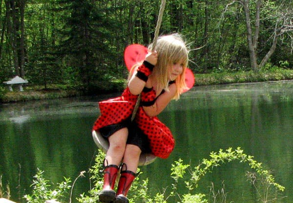 Kids' meals are served on Frisbees, and the grounds include a fish pond, a tree swing and several picnic tables and benches.
