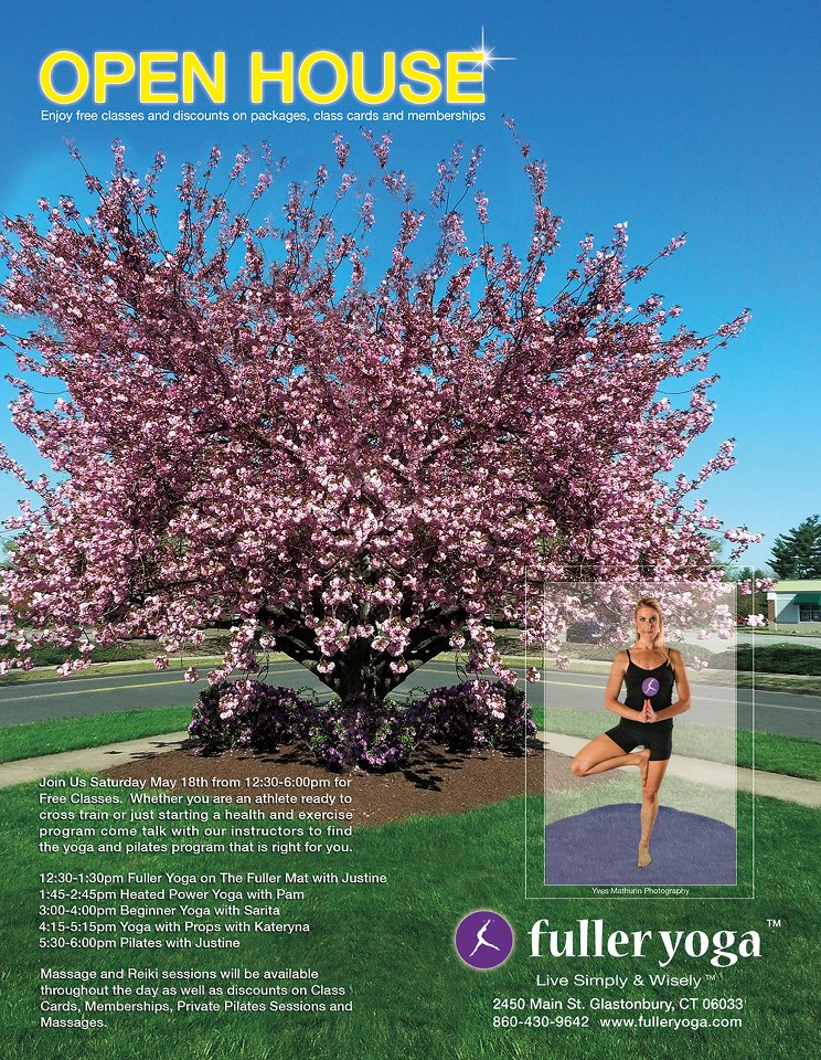 Everyone loves an open house event. This weekend Sat. May 18th we will be hosting you as our guest to try classes and visit with our instructors. We have had so many success stories with people losing weight, getting in shape, reducing pain, feeling better and finding more peace of mind. Come join us from 12-6pm for free classes and awesome discounts on class cards, private pilates and massage packages. Right behind Panera and across from Whole Foods. But a bit of advice it's a busy weekend here in Glastonbury Center so once you find a parking spot plan on keeping it! For a schedule of free classes visit http://www.fulleryoga.com/oursite/eventsworkshops