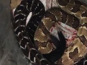 An animal control officer was called to a Mountainview Road at about noon. Two timber rattlesnakes were in the back yard, police said.