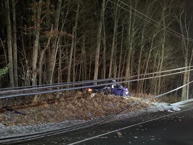 Wires fell on a car during a crash in Glastonbury Thursday.