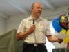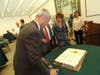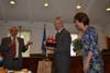 Adams and Smith presented Watkins with several gag gifts, including a six pack of Coca-Cola (Watkins does not like coffee, and Smith said he needed something to keep the former chief awake during staff meetings).