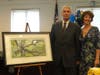 Watkins also received a painting from the town, and his wife was presented flowers.