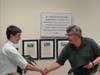 Huget issued a certificate for Sean Rosenberger in recognition of Rosenberger serving as a student representative on the school board.