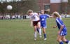 Suffield’s Brittany Champagne’s gorgeous strike rang the crossbar in the 75th minute, a harbinger of Brianna Bishop’s goal off a feed from Peri Stevens in the 77th minute to make it 2-1.