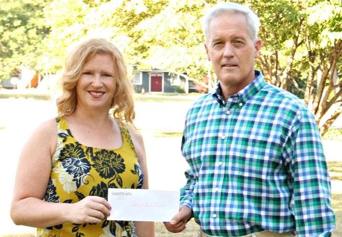 Photo: The Granby Education Foundation’s Kristina Gilton with Curt Johnson of GoodWorks Insurance.