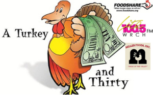 The Lite 100.5 WRCH on-air staff will be at Miller Foods’ Thanksgiving Tent in Avon Wednesday, Nov. 20 from 8 a.m. to 3 p.m. to greet those who come to make purchases or drop off donations of food or cash for the Jack Bannan Memorial Turkey Trot, a one-day drive benefiting Foodshare.