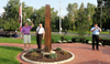 The governor joined state and local dignitaries for the dedication of a memorial garden whose centerpiece is a steel beam from the World Trade Center's North Tower at South Fire District Wednesday.