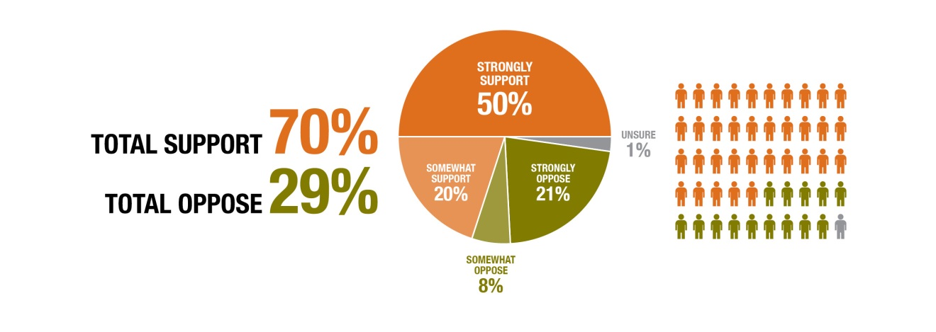 - In addition to support from large majorities of voters across the political spectrum, key demographic groups are in support of the proposal, including Hispanics (83 percent), African Americans (82 percent), suburban women (68 percent) and young voters under the age of 35 (79 percent).