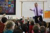 On Wednesday, December 4th Cobb School’s Lower Elementary welcomed a very special guest. NBC Weatherman Bob Maxon presented a lesson on weather, focusing on the weather we experience in Connecticut and the weather of his childhood in Oswego, New York. In between there were references to tornados in the midwest, the tsumanis in Indonesia and Japan, and the recent typhoon in the Philippines. Each of Maxon’s tales of weather triggered dozens of questions from his curious audience.