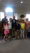 The winning students wrote essays in response to the question: “Describe the American Melting Pot as it relates to immigration.” Responses discussed many topics including changes in how immigrants enter the United States today as compared to a century ago. A winner and runner-up were selected from each participating school: Saint Mary’s School, Tootin’ Hills Elementary School and Central Elementary School.