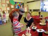 Valley Pre-School’s 2012-2013 year is quickly coming to an end but May has been a month alive with the arts. The Art Show was held on May 1st. Years ago, teacher Sally Moon launched the idea of having an art show with the 4 year old classes. Now that idea has evolved into a day that is the culmination of a year’s worth of artistic exploration with the children. Classrooms are transformed, classical music is softly played, canapés are served to guests, and the children act as guides leading their family and friends around for a museum experience beyond their dreams. This year’s guest artist, Phoebe Kass Berkel, remarked, “I have been to countless art shows and this is unlike anything I’ve ever seen!” The children work in all different media throughout the year, and display their creations. Texture tiles, melted crayon constructions, wood sculpture, still life with watercolor, photography, paper making, stabiles, collage, fabric art, free painting, and group sculpture were some of the displays. This year, gardening in spring inspired Mrs. Jackson and Mrs. Moon’s class sculpture. Mrs. Tawney and Mrs. Goldman’s class sculpture was an entire Fairy Village! Their inspiration came from a trip taken by the teachers in the fall to the Wee Fairie Village exhibit at The Florence Griswold Museum in Old Lyme. The children are exposed to a variety of artists and their styles. Math, science, history, and literacy are neatly woven throughout the art projects. The philosophies of “process over product” and individuality in design are central to the creation of the pieces in the show. Parents, grandparents, and friends of the artists as well as alumni were amazed by the show. Audrey Laird, an alumni parent noted, “There is nothing like this. This experience is one of the things they remember!” Valley Pre-School’s teachers would like to thank the many guest artists over the years who have so willingly contributed their time and talent in working with the children. Phoebe Kass Berkel, Maggie Burnett, Gretchen Brown, Laura Eden, Bill Simpson, Avis Cherichetti, Brad McDougall, Sally Markey, Sharon Mayock, and Steven Brown have made a lasting impression on the children. Musically, Valley Pre-School was honored to bring Ben Toth, Chairman of the Department of Percussion at the Hartt School and his son Benjamin, a VPS alum, to the school for a percussion concert once again. It was informative, engaging and beyond the imagination of the parents and grandparents also in attendance. In a manner that preschoolers could understand, the Toths shared their extensive knowledge of the origins of percussion and the variety of percussion instruments from around the world. Marimba, steel drums, geelee, rick, and djembe were just some of the instruments that the children experienced. A lot of smiles and a great deal of moving with the beat was seen as the percussion music filled Cook Hall. As a finale, while the Toths performed their last piece, the children accompanied them on their own percussion instruments they had previously made in the classroom. And, further inspired, the children continued their own percussion concert at the end of the morning on the Imagination Platform on the school’s playground. What incredible sounds filled the air! Valley Pre-School is grateful to the Toths for sharing their talent with the children. If you are interested in having your child experience Valley Pre-School, we are currently accepting applications for the 2013-2014 school year. Please visit us at www.valleypreschoolinfo.org or call 860 653-3641 for more information.
