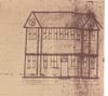 The unpainted wooden meetinghouse had a cut stone foundation which was described in old records as "40 feet in length and 35 feet in breadth; and 20 feet between joints." The gables faced on North and South with the broadside towards the road. The 1793 drawing shown here is a long accepted representation of the first meetinghouse which also shows "the great door" in one of the long sides.