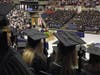 Excited graduates displayed their exuberance with pictures, glitter and, in one instance, a plush dinosaur fastened to their mortarboards. Beach balls, a common site at the ceremony in past years, were not present but vociferous call-and-response cheers of “UConn! Huskies!” punctuated the event.