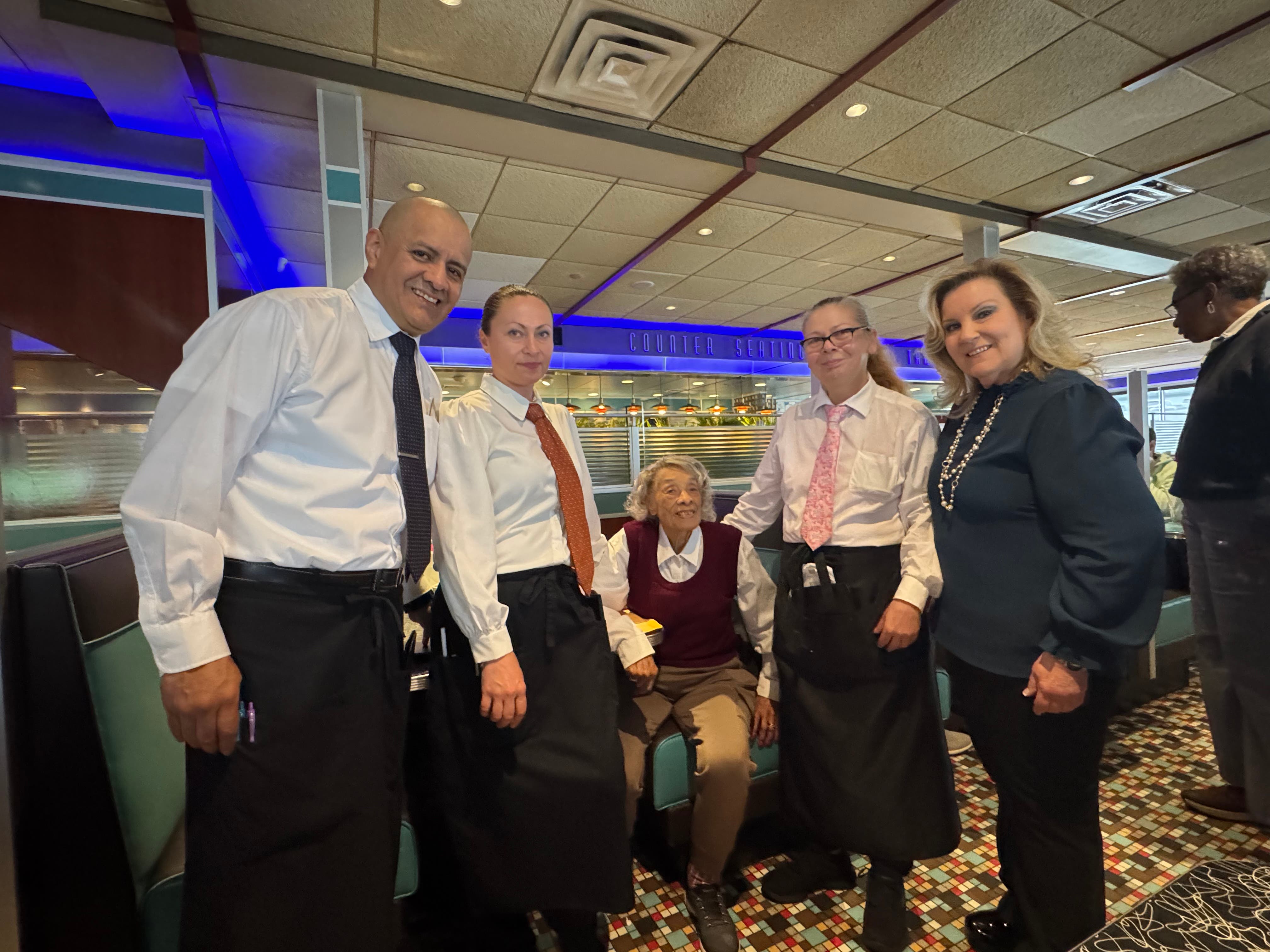 "She makes us laugh and she puts us in her place," said Stamford Diner General Manager Laura O'Brien, who organized Thursday's surprise honor. "It's just nice to have that family feel of someone who has been coming here for ages. She's just an incredible person. She's so sharp."