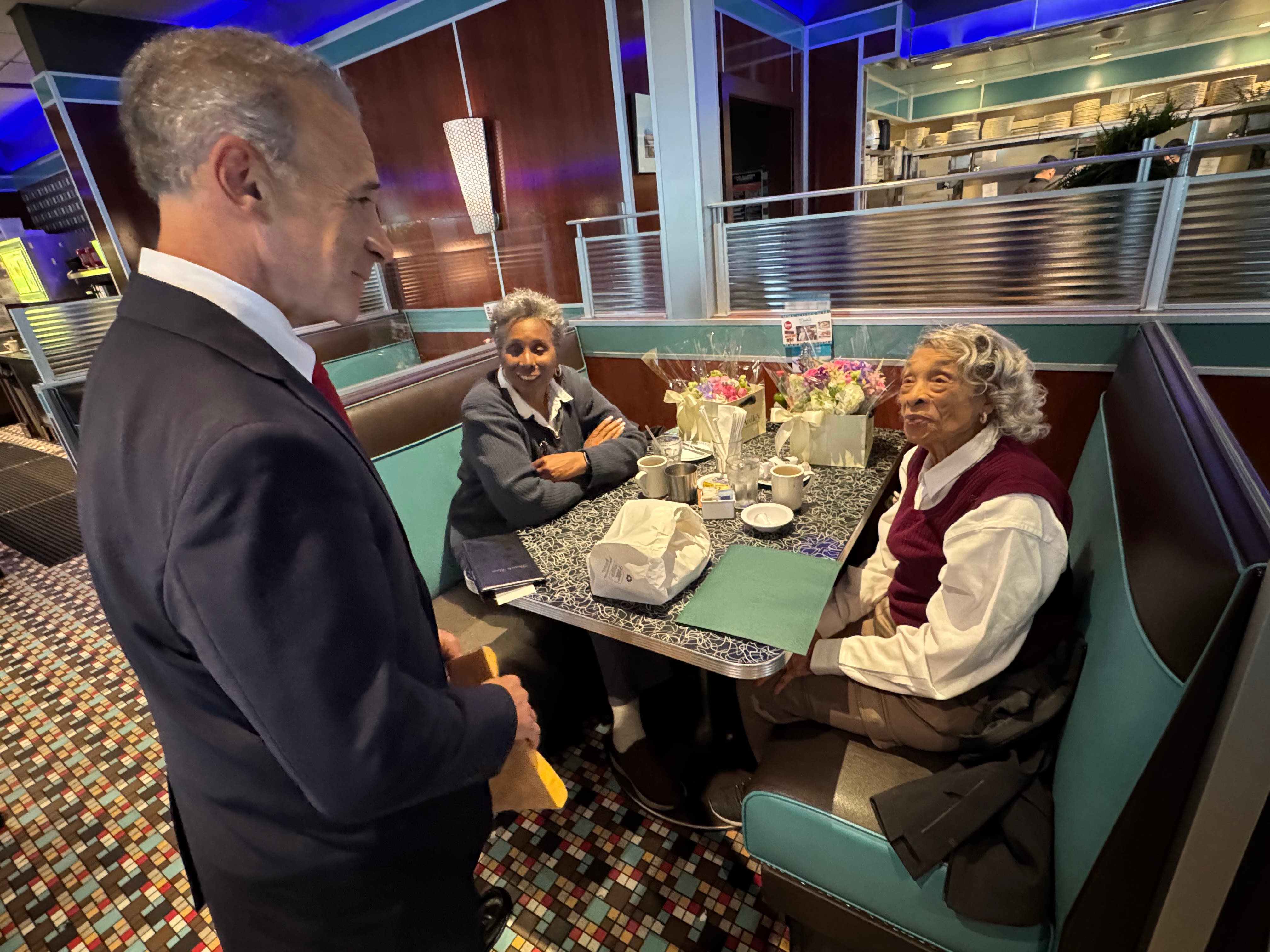 The breakfast date was extra special this week, as the diner and Greenwich First Selectman Fred Camillo surprised Monroe and honored her with a certificate of special recognition several days after her 103rd birthday.