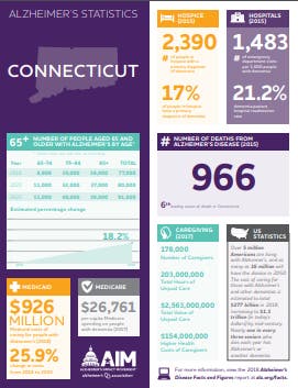 The Alzheimer’s Association is the leading voluntary health organization in Alzheimer's care, support and research. Our mission is to eliminate Alzheimer’s disease through the advancement of research, to provide and enhance care and support for all affected, and to reduce the risk of dementia through the promotion of brain health. Our vision is a world without Alzheimer’s. For more information, visit the Alzheimer’s Association at alz.org/ct or call the 24/7 helpline at 800-272-3900.