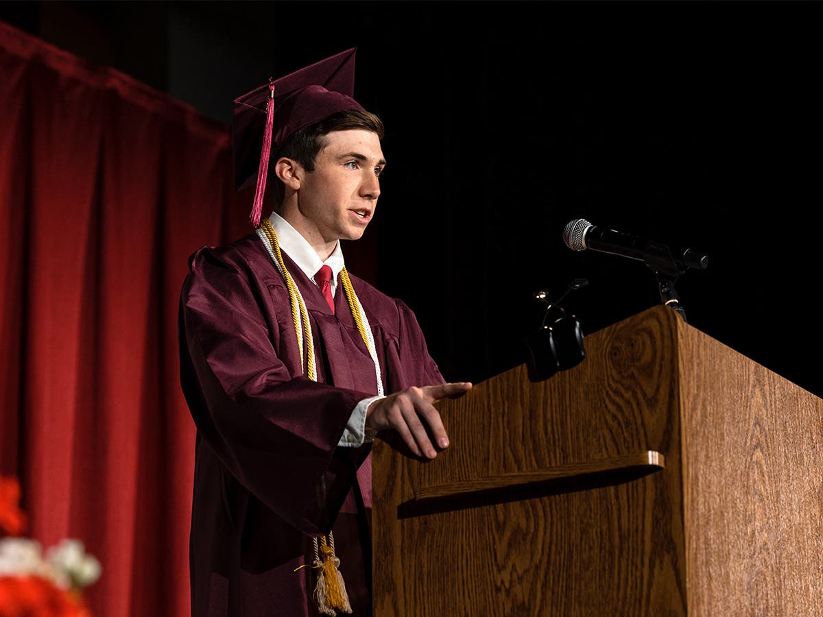Salutatorian Jack Sullivan addressed the community. “Looking back at my high school experience, all of my proudest accomplishments have resulted from welcoming challenge with open arms,” he said.”It is only by welcoming challenge that you can discover and actualize the version of yourself that would otherwise lay buried. My life is forever changed as a result of the things I’ve learned to welcome in my time on the Hilltop.”