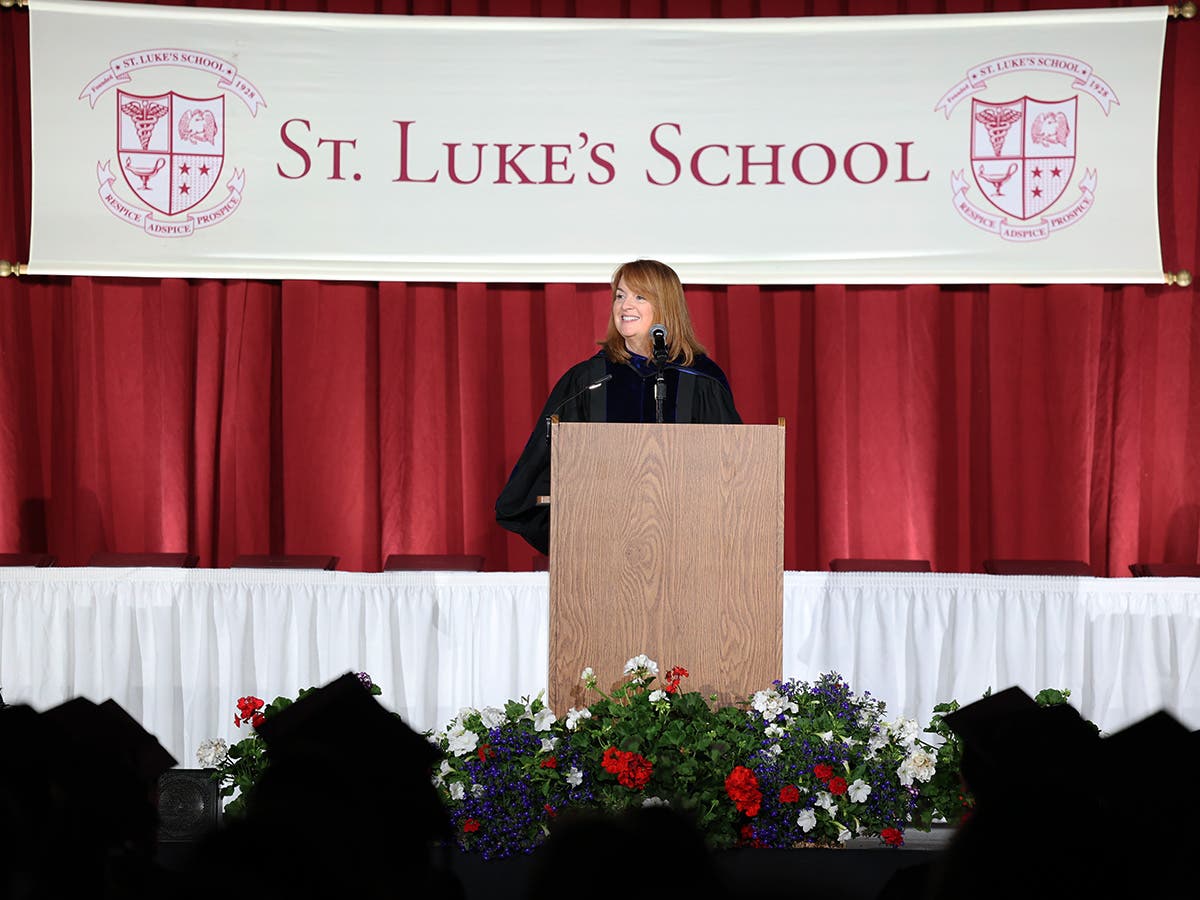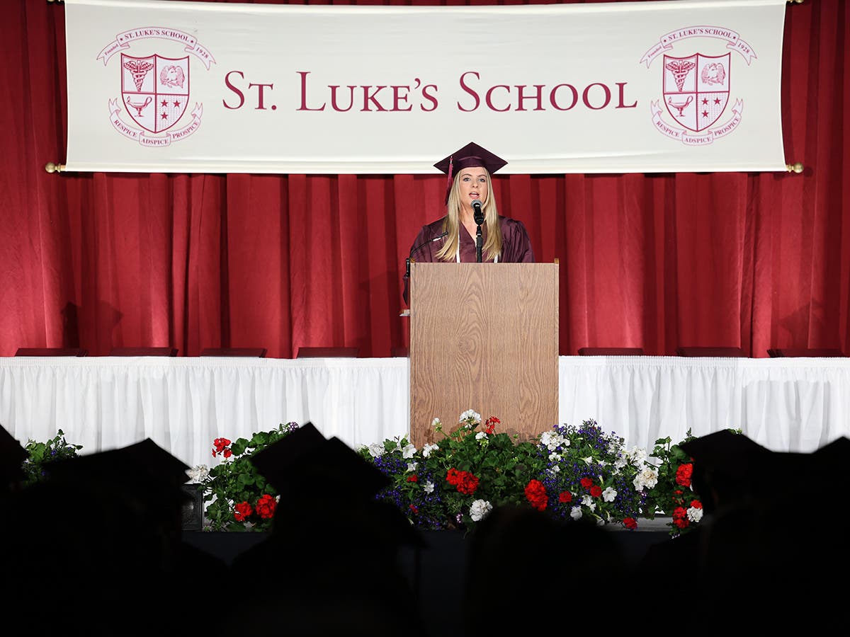 St. Luke’s Board Chair Jennifer L. Foster spoke to graduates, including her son George, saying “From the moment you entered the front doors of St. Luke’s and passed under the etching of our school motto, ‘Enter to Learn. Go Forth to Serve,’ you have been busy preparing for this moment to go forth to serve, to use your talents and knowledge to make this world better…For the world sorely needs your wisdom, your knowledge, and your problem-solving skills. I for one, cannot wait to behold the change you will inspire.”