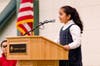 Upper School Community Service president Margot Mejia- Johnston and Middle School Community Service vice president Alyssa Mulé spoke about the service projects in their respective divisions.