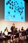 On board as taskmasters were “Indiana Joe” (aka Joe Knowlton) from the Tech Department and Duff Center co-director Connie Blunden who read the rules for each round and then began the stream of questions. The girls were courageous and confident on stage, and members of the audience, including a panel of faculty judges, held their breath in anticipation of each answer. As the completion unfolded, girls were required to answer questions orally, write down answers on whiteboards, and answer questions that analyzed population growth in the United States while looking at a map. Going into the Championship Round, Group V student Alex Stengel and Group VII student Jo DeWaal remained. Finally, it came down to Jo, who earned her victory by getting more (2 out of 3) of the championship questions correct and Alex capturing runner-up status after a valiant bid for the championship. Both contestants demonstrated poise and grace, demonstrating that they indeed had learned a great deal on their Geo Bee journey.
