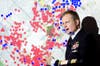 He also gave his audience a taste of daily life on the base, showing a photo of himself with a thermometer that indicated the temperature outdoors in Baghdad one day – 128 degrees---and even sharing a video that he had filmed of a convoy trip through the “Green Zone” of the city. Commander Boyer colored his description of the mission and tasks of life at FOB Shield with personal anecdotes, sharing moments when he felt nervous, and showing the class a picture of his family reunited at Westchester Airport upon his return.