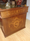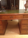 MAGNIFICENT ANTIQUE ENGLISH LEATHER TOP PARTNERS DESK. SATINWOOD MAHOGANY WITH OUTSTANDING PEAR WOOD INLAY. 6 FT LONG BY 3FT WIDE AND 36 HEIGHT.