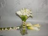 Stephanie on the other hand wanted all white flowers. After many months of indecisiveness she finally went back to her original choice of white callas. She only varied from the theme with the boutonnieres for the men which were very organic and from the garden.