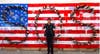 Datuna overlays optical lenses in web-like patterns onto images of national flags, global brands, and portraits of famous authors, inventors, and artists of all kinds, composed of collaged photographs, newspaper articles, magazine clippings, and painted passages. The lenses, which simultaneously distort and clarify the images, signify the network of individual viewpoints brought to bear on all issue. In the past he has used the American and Israeli flags, logos from luxury companies like Louis Vuitton, and Marilyn Monroe—Datuna then covers the image with glasses, both positive and negative lenses to create rippling optical effects.