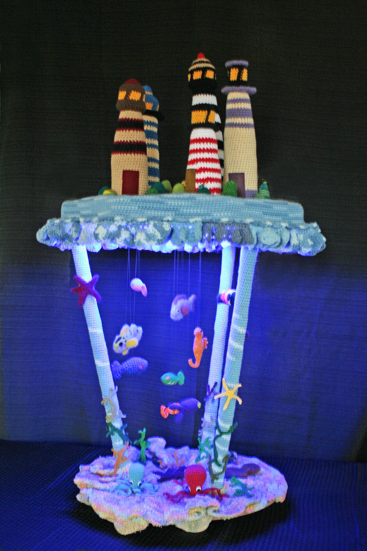 Margaret Phillips has crocheted an intricate sea world entry for the Maritime Aquarium's annual Festival of Lighthouses contest.