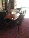 Just in a Ralph Lauren Set with 12 Black leather chairs and table $3900 also server and china cabinet to match. Another Sheraton Dining Table with 10 chairs $3200 plus matching server. also arriving today a large Art Deco ding room set with 3 matching cabinets. COME and see us.