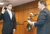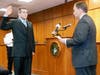 Photos: #1: First Selectman Peter Tesei swears in Sebastian Arenas; #2: Justin Quagliani; #3: Max Rinaldi. Credit: Barbara Heins.
