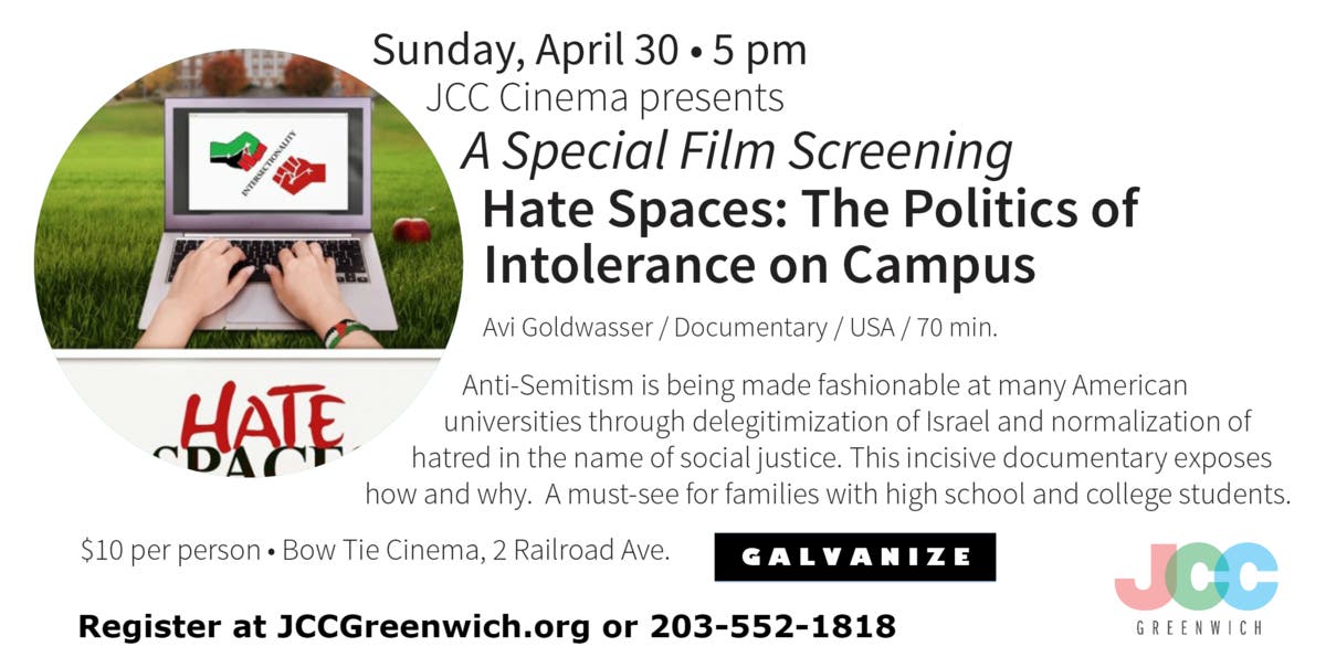JCC Greenwich presents a special film screening of “Hate Spaces: The Politics of Intolerance on Campus”