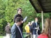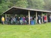 About 125 Democratic party faithful filled the fog-shrouded clambake area of Greenwich Point Sunday afternoon to remember their late leader, Dave Roberson.